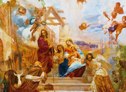 szerokość - 25 m. Na fasadzie między pilastrami w niszach mieszczą się figury Chrystusa, Marii oraz Józefa. Dość skromnie (oczywiście jak na krzeszowskie realia) wyposażone wnętrze kryje wybitne dzieło malarstwa barokowego, wykonane przez mistrza Michała Willmanna (1630-1706) oraz jego pomocników (syna Michała Leopolda Willmanna i pasierba Jana Krzysztofa Liszkę) za pomocą techniki al fresco. Jest to cykl pięćdziesięciu malowideł przedstawiających genealogię i dzieje Świętej Rodziny. Wśród nich, na uwagę zwiedzających świątynię, zasługują cykle: „Siedem radości św. Józefa” oraz „Siedem smutków św. Józefa” - namalowane na ścianach i wysklepkach bocznych kaplic. Poza tym niezwykle interesuący jest ołtarz z tabernakulum z roku 1678 (autorstwa Jerzego Schroettera), organy oraz bogato zdobiona drewniana ambona z 1707 roku. Ciekawostką jest to, iż „Śląski Rembrandt”, jak zwie się nierzadko Willmanna, umieścił na jednym z fresków także samego siebie w postaci karczmarza, a Świętą Rodzinę potrafił umiejscowić w swojskich, sudeckich krajobrazach.