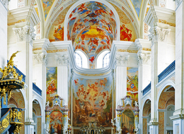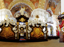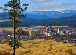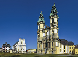 wielkością jedynie włościom książęcym. Złoty okres w historii Krzeszowa wystąpił na przełomie XVII-XVIII w. pod rządami opatów: Bernarda Rosy, Dominika Geiera, Innocentego Fritscha. Z tego okresu pochodzą najbardziej znane krzeszowskie zabytki skupione w zespole klasztornym, który jest jedną z najwspanialszych pereł budownictwa barokowego w Europie. Przepiękna Bazylika Mniejsza pw. Wniebowzięcia Najświętszej Marii Panny, góruje nad okolicą, a jej ponad 70-metrowe wieże stanowią charakterystyczną dominantę w krajobrazie, widoczną z odległości wielu kilometrów. Wzniesiona została na miejscu gotyckiego kościoła w latach 1728-35 (7 lat budowy miało odniesienie symboliczne - gdyż tyle czasu budowano świątynię jerozolimską). Kościół powstał z inicjatywy opata Innocentego Fritscha i należy do najwyższej klasy dzieł baroku w Polsce. Autor projektu bazyliki nie jest znany, ale możliwe, iż wywodził się on z kręgu czeskiego architekta Kiliána Ignáca Dientzenhofera. Ołtarz główny zdobi obraz Petera Brandla, ołtarze boczne wykonali Ignacy König oraz Josef Smišek, obrazy namalował m.in. Feliks Antoni Scheffler, a wspaniałe polichromie są dziełem Jerzego Wilhelma Neunhertza. W przebogato zdobionym wnętrzu uwagę zwiedzających przyciągają m.in. stalle, kazalnica, ołtarze boczne oraz organy - dzieło Michała Englera oraz ikona Matki Bożej Łaskawej, koronowana w 1997 r. przez papieża Jana Pawła II. Fasadę bazyliki zdobią wspaniałe dzieła sztuki rzeźbiarskiej autorstwa m.in.: Ferdynanda Maximiliana Brokoffa, Antoniego Darazila oraz Jerzego Gode. Po wschodniej stronie kościoła znajduje się dobudowane w 1735 roku Mauzoleum Piastów Świdnicko-Jaworskich. Jest to rzadko spotykany przykład architektury grobowej. Wysoka budowla, nakryta jest dwoma kopułami z latarniami o średnicy ponad 9 m, ozdobionymi malowidłami Jerzego Neunhertza (1736-38 r.) poświęconymi historii fundacji klasztornej oraz samego klasztoru. Wystrój wnętrza, bogato zdobiony freskami i marmurami, należy do najciekawszych rozwiązań tego typu w Europie. W krzeszowskim mauzoleum spoczywają m.in. Bolko I Surowy oraz jego wnuk Bolko II Mały oraz inni członkowie rodziny książęcej. Kościół świętego Józefa - zaprojektowany przez budowniczego Marcina Urbana z Lubawki, po katastrofie budowlanej (runięcie dwóch 40-metrowych wież) został dokończony przez Michała Kleina z Nysy. Jego budowa została zainicjowana przez opata Bernarda Rosę w latach 1690-96 i została zrealizowana w stylu wczesnego baroku. Przeznaczony był jako świątynia m.in. dla Bractwa Świętego Józefa, ale także krzeszowskiej parafii. Jest to halowy budynek zbudowany na planie prostokąta o wymiarach: długość - 57,7 m,